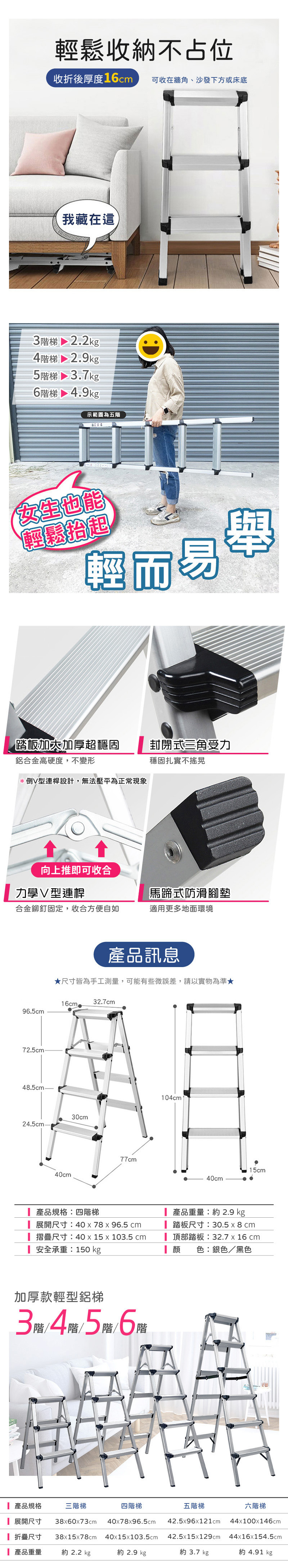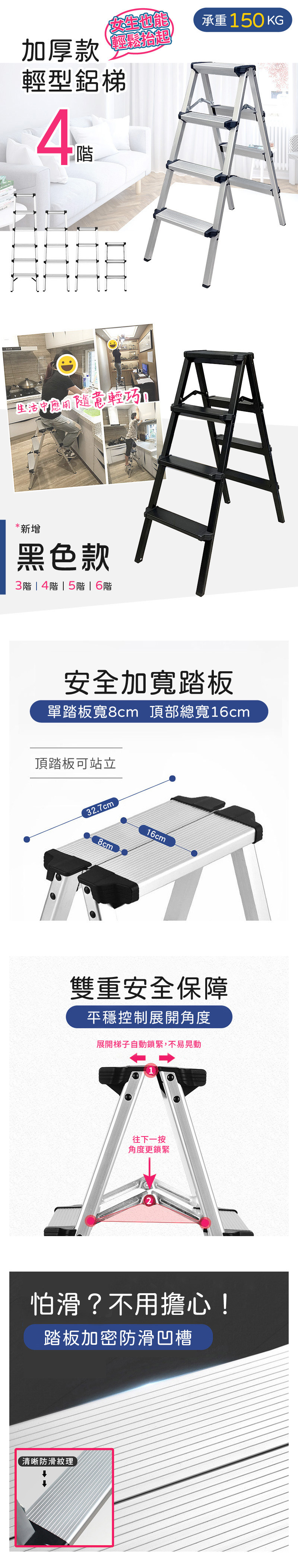 【4階 加厚款輕型鋁梯-2色】四階梯 摺疊梯 A字梯 人字梯 家用梯 梯子 室內梯
